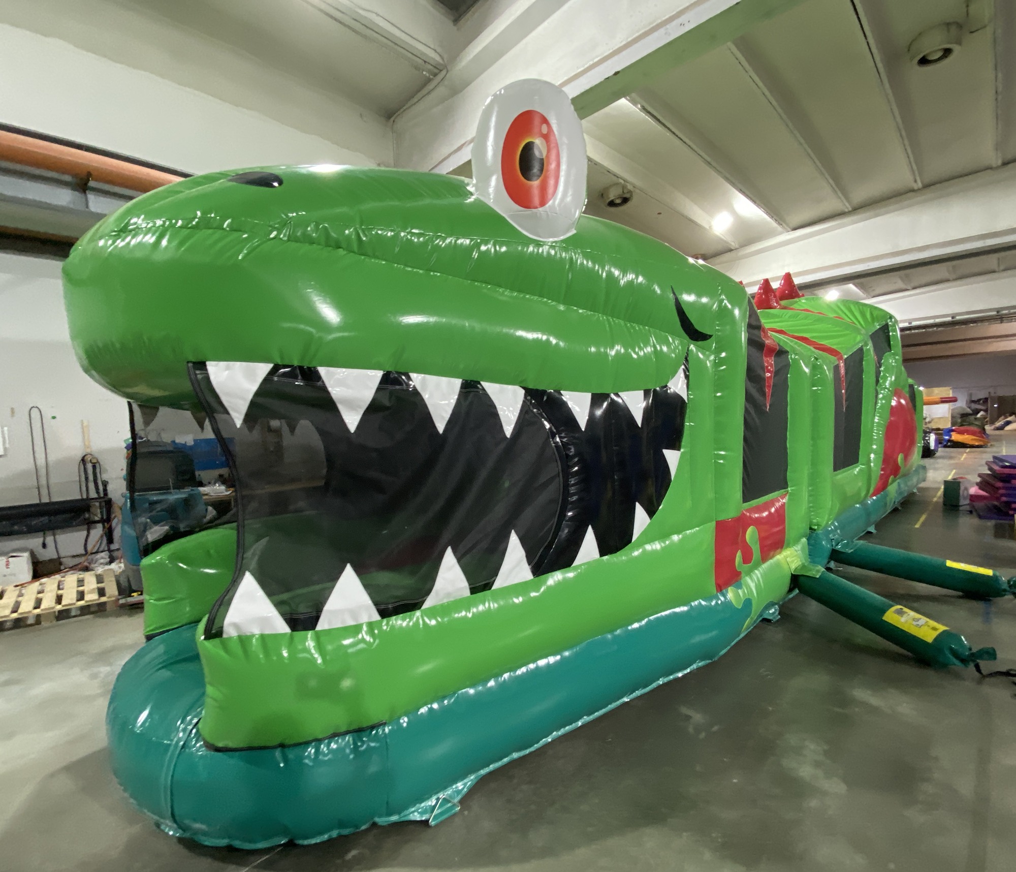 Pressa dig genom tunnlar, testa din styrka med biff bash-element, klättra uppför väggar och gör dig redo för en hisnande rutschkana som markerar det triumferande slutet på ditt äventyr. Den Ödlehinderbanan är ett prov på smidighet, mod och beslutsamhet.